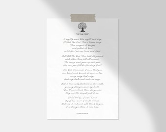 Printable Wall Art The Oak Tree Poem Modern Home Decor Etsy